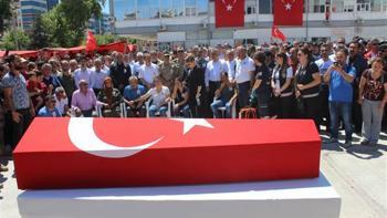 Adıyaman'ın Sincik ilçesinde dün terör örgütü PKK mensuplarınca ekip otosuna yapılan silahlı saldırıda yaralanan ve tedavi gördüğü hastanede şehit olan polis memuru Taha Uluçay için tören düzenlendi.